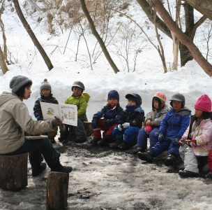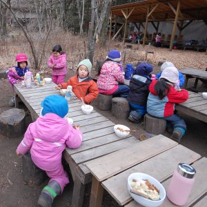ぴっぴの一日 「おはよう」 「おはよう」「おはよう~!」 声が響く また新しい一日 リュックサック背負って森にあつまる 今日もいっぱい遊ぼうね 「朝のあつまり」 森の中 切り株にすわり お陽さまの光 風 鳥の声 季節の匂いを感じながら みんなが集まるひととき みんなで歌をたのしもう おはなしの世界をたのしもう 「遊び」 友だちとつくりだす時間 年齢を超えて遊ぶおもしろさ 木、枝、葉、木の実、土、石、水、虫、花、そして仲間・・・ 遊びがふくらむ 友だちとたっぷり関わる時間が ここにある 「ランチ」 おひさまの光や風を感じながら、森の中でいただくランチ。 友だちと一緒に食べる、楽しいひととき。 ぴっぴランチも、おうちの人が作ってくれたお弁当も、 自然を感じながらみんなと一緒だから、美味しい! 「帰りの絵本の時間」 同じ年齢の仲間と過ごす 一日の終わりの時間 じっくり楽しむ おはなしの世界 一日をふりかえり 話し合いもする 大切な時間 「さようなら」 ♪さよならあんころもち またきなこ みんなでどうぞ 「おかあさ~ん」♪ みんなが走る おうちの人も走る 再び会えた喜びを感じる時 ぴっぴが大切にしている瞬間 また明日
